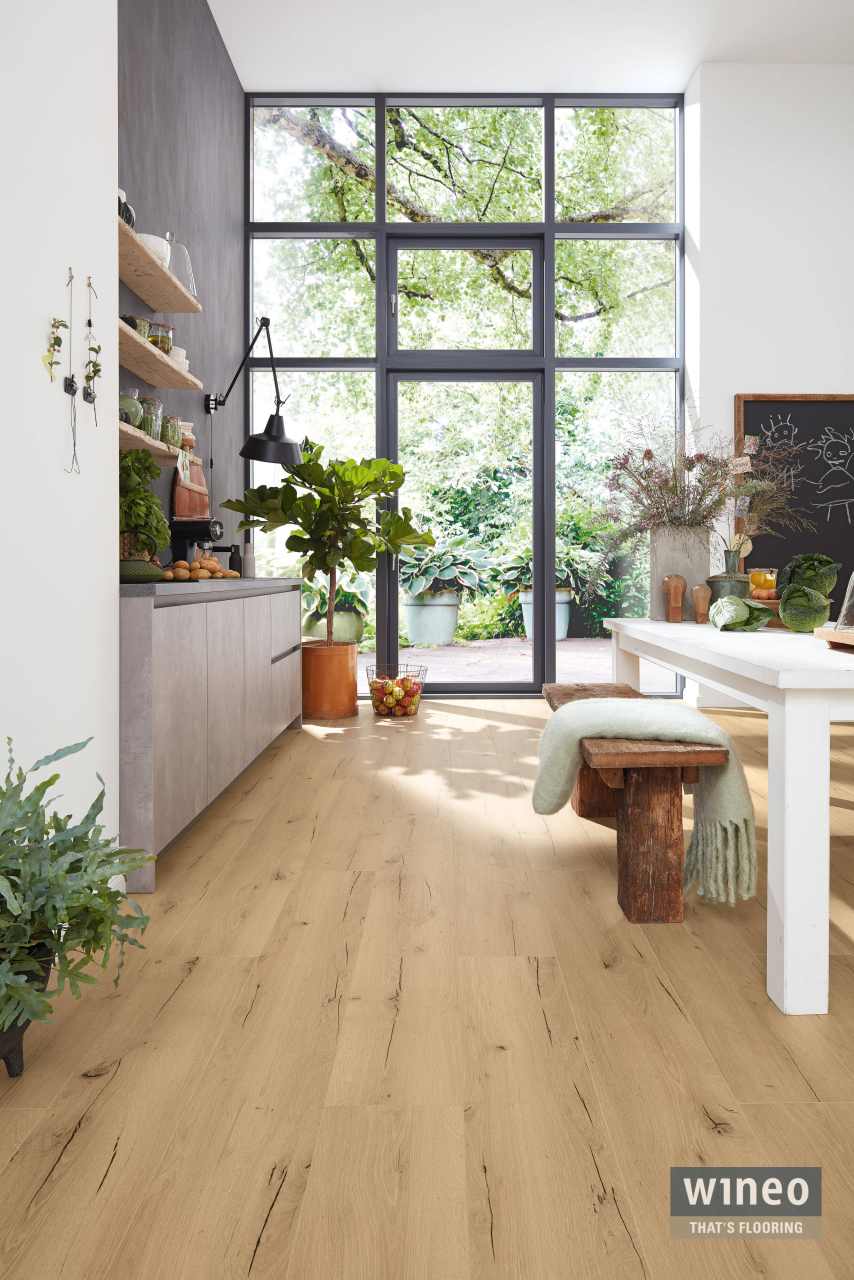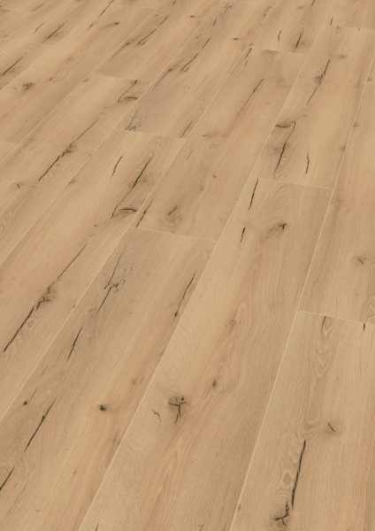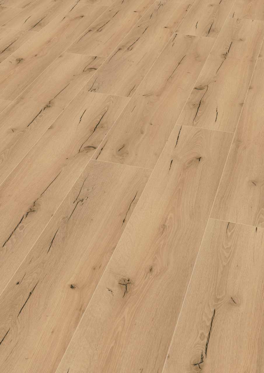 • authentischer Dielen-Charakter durch umlaufende, lackierte V4-Fuge aller Holzdekore