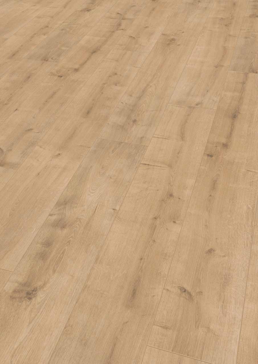 Unser Laminat besteht zum Großteil aus Biomasse. Ein Hauptbestandteil ist die Holzwerkstoff-Trägerplatte. Diese setzt sich aus fest verdichteten Holzfasern zusammen. Selbst der Kleber, den wir verwenden, entnehmen wir zum überwiegenden Teil aus den im Holz vorhandenen Harzen.